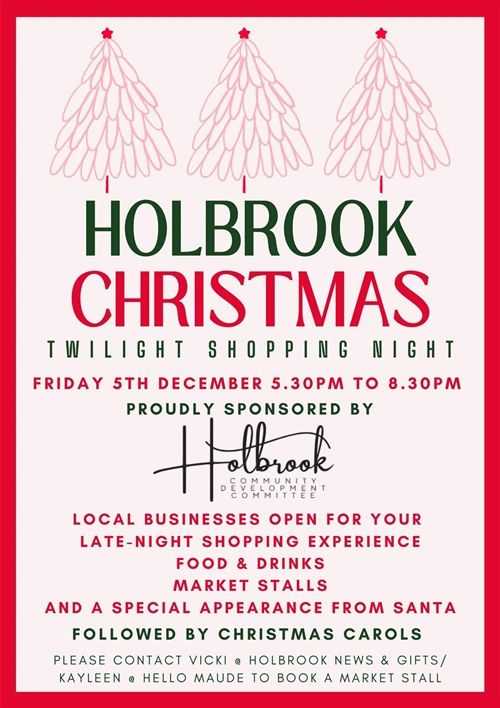 – Local business with Christmas shopping experience – Food and drinks – Christmas Carols