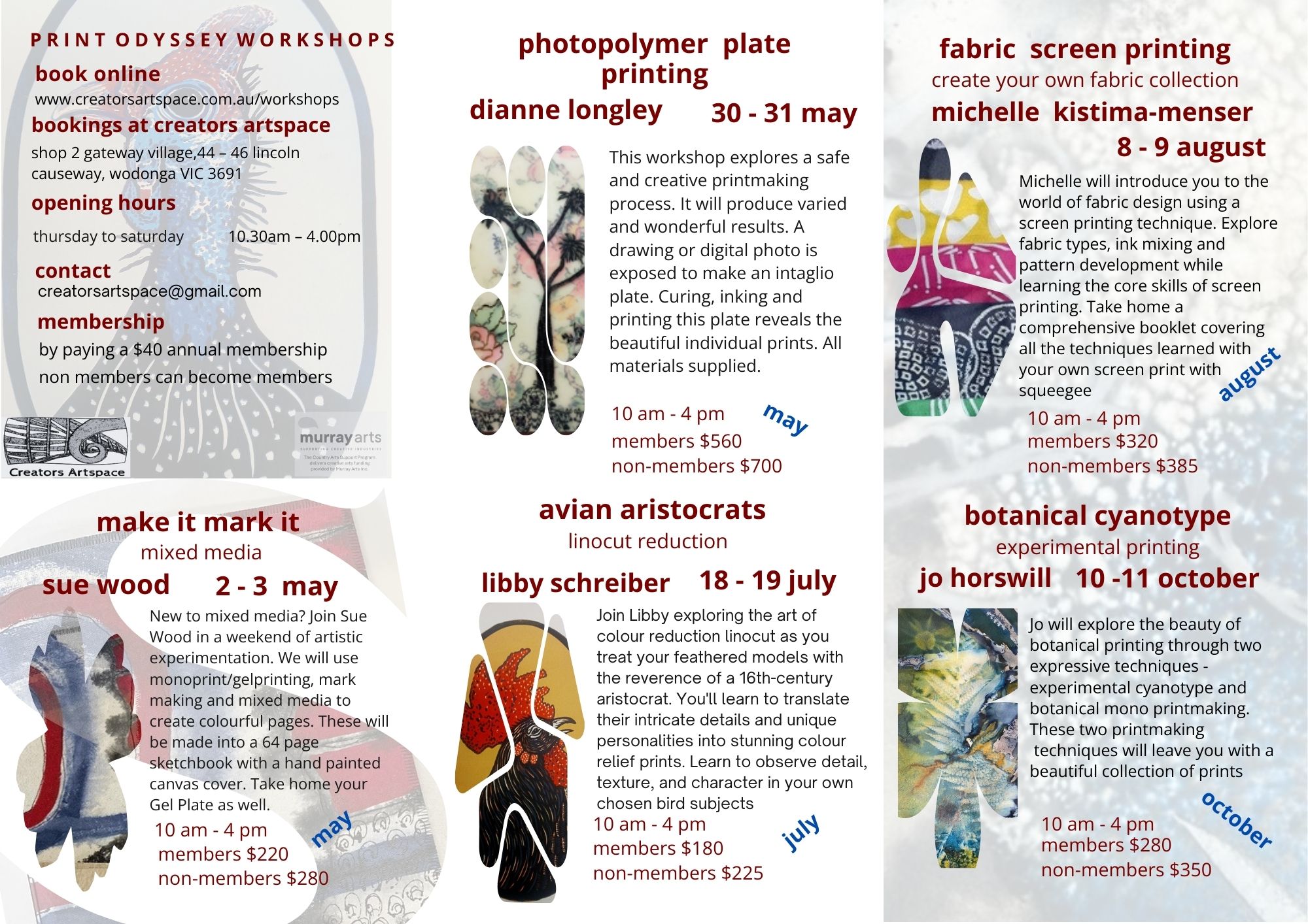 The Print Odyssey Workshop Program is presented by Creators Artspace, a recipient of the Country Arts Support Program (CASP) funding for 2026. More details about this program can be found on our website at creatorsartspace.com.au The program offers a range of print experiences for the novice and experienced artist Please contact us for more details…
