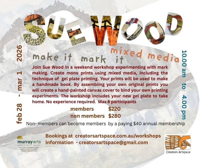 New to mixed media? Curious about the different mark making supplies available in your local art shop? This workshop combines experimental mark making, basic mono print, and mixed media processes with the pleasure of creating a handmade book. Participants will take home a new gel plate for practice at home. Sue has a wide range…