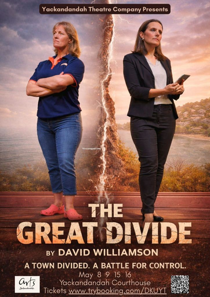 The Great Divide by David Williamson is a play about greed, corruption and loyalty in a small town. When Alex Whittle comes to town to suggest a golf course on land set aside for social housing it’s not all she is planning. Contains coarse language. Parents are advised to use discretion when bringing children under…